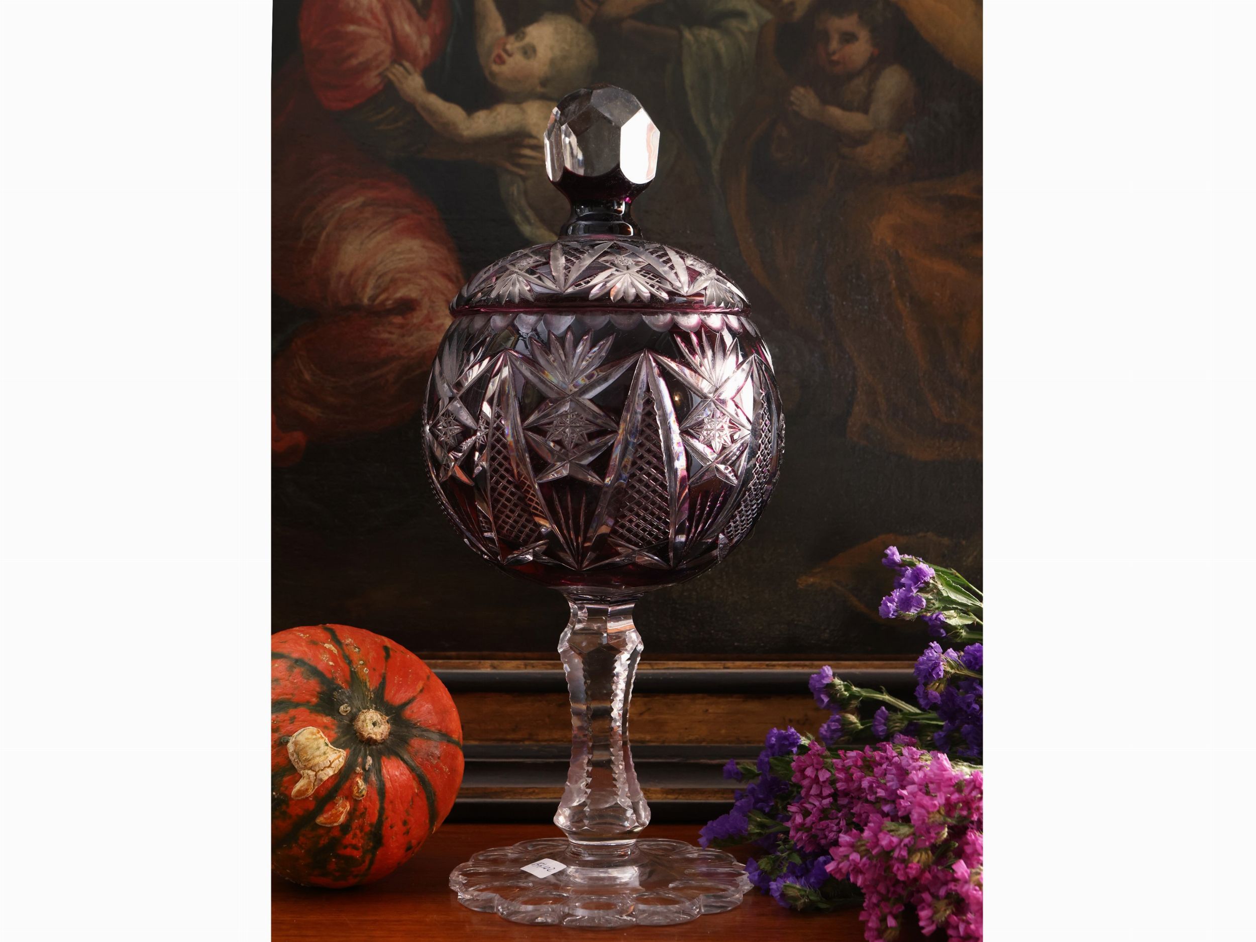 Coppa porta bon bon in cristallo doppio di Boemia