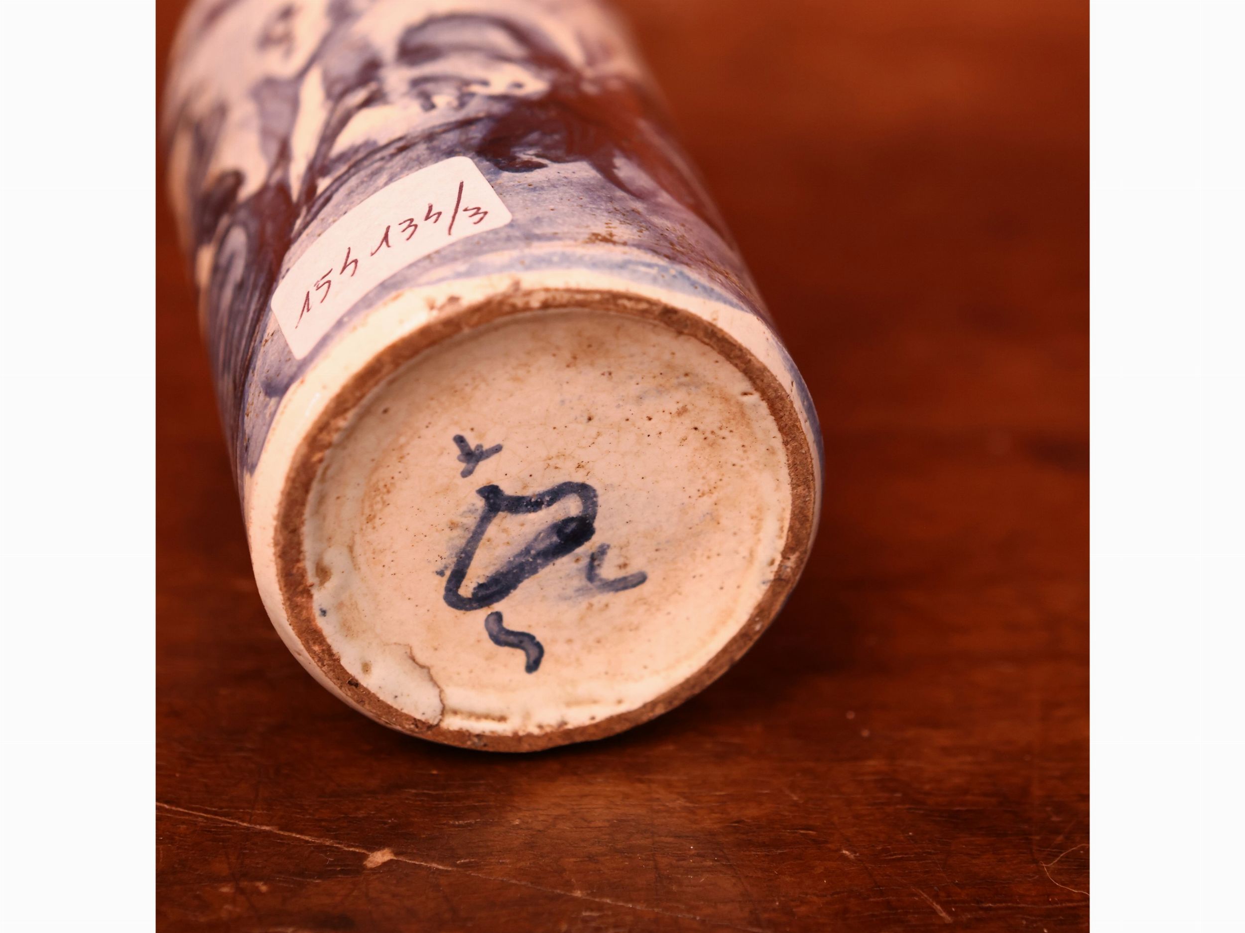 Savona, XIX secolo dipinti con putti in monocromia blu, abbinati ad un albarello, difetti