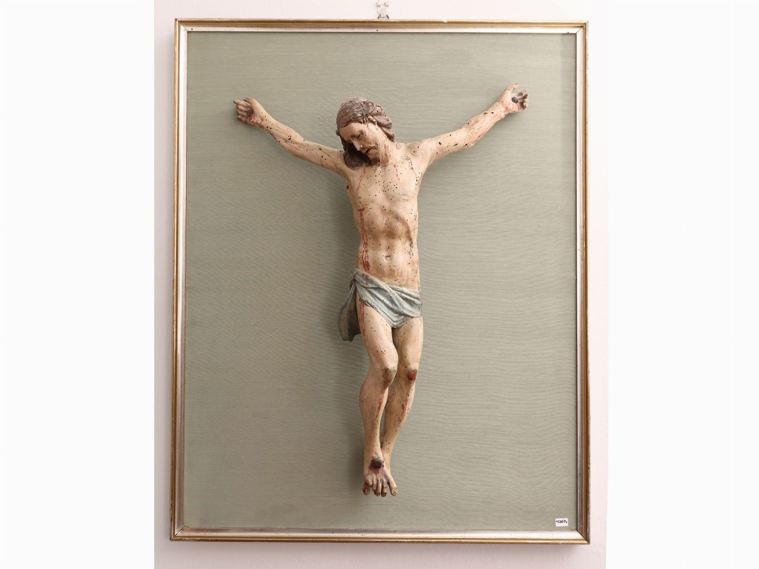 XVIII/XIX secolo in legno dipinto, applicato a pannello in tessuto, alcuni difetti