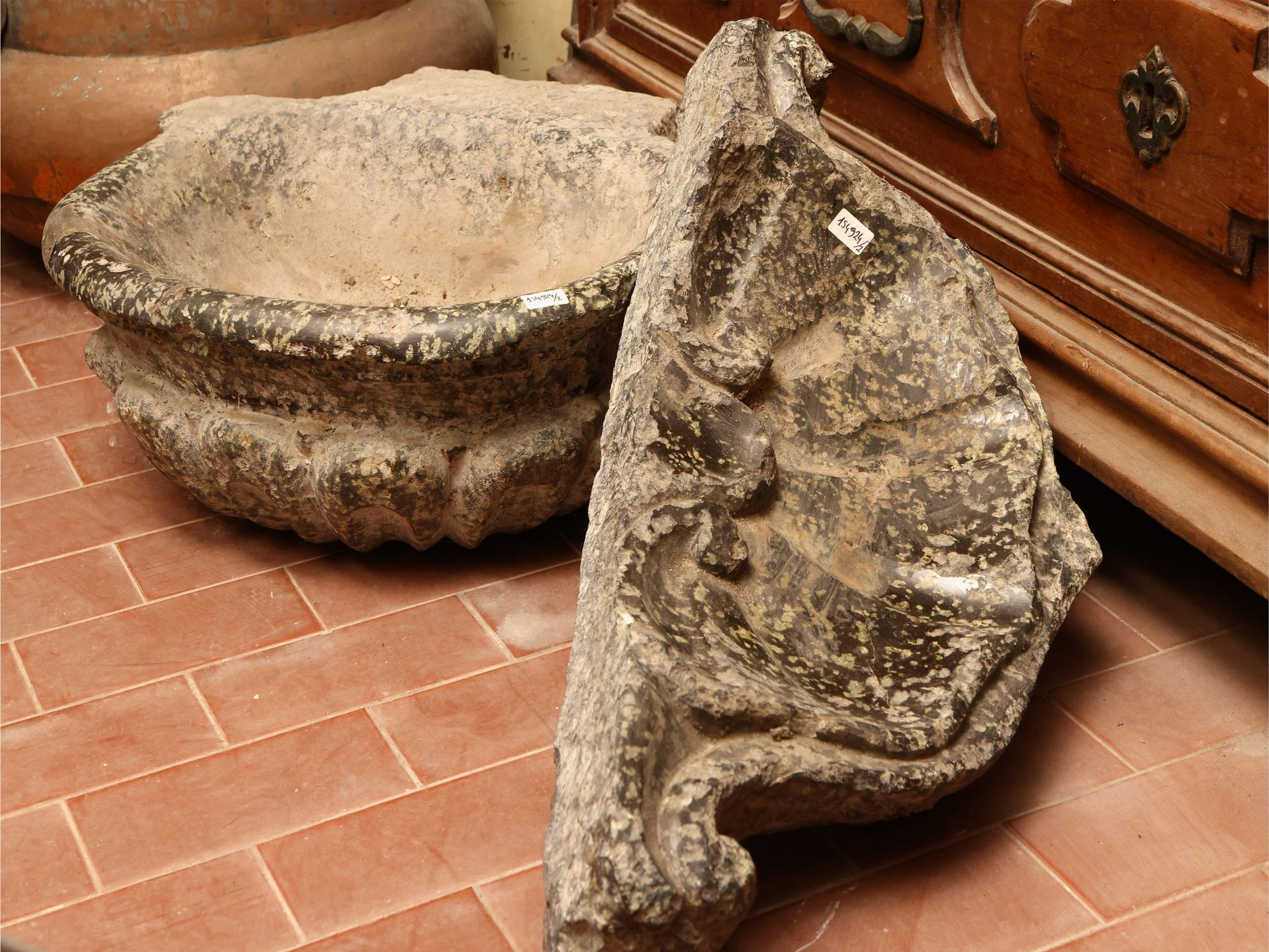 XVIII secolo una realizzata come una conchiglia con bordo modellato con volute, l'altra baccellata, alcuni difetti