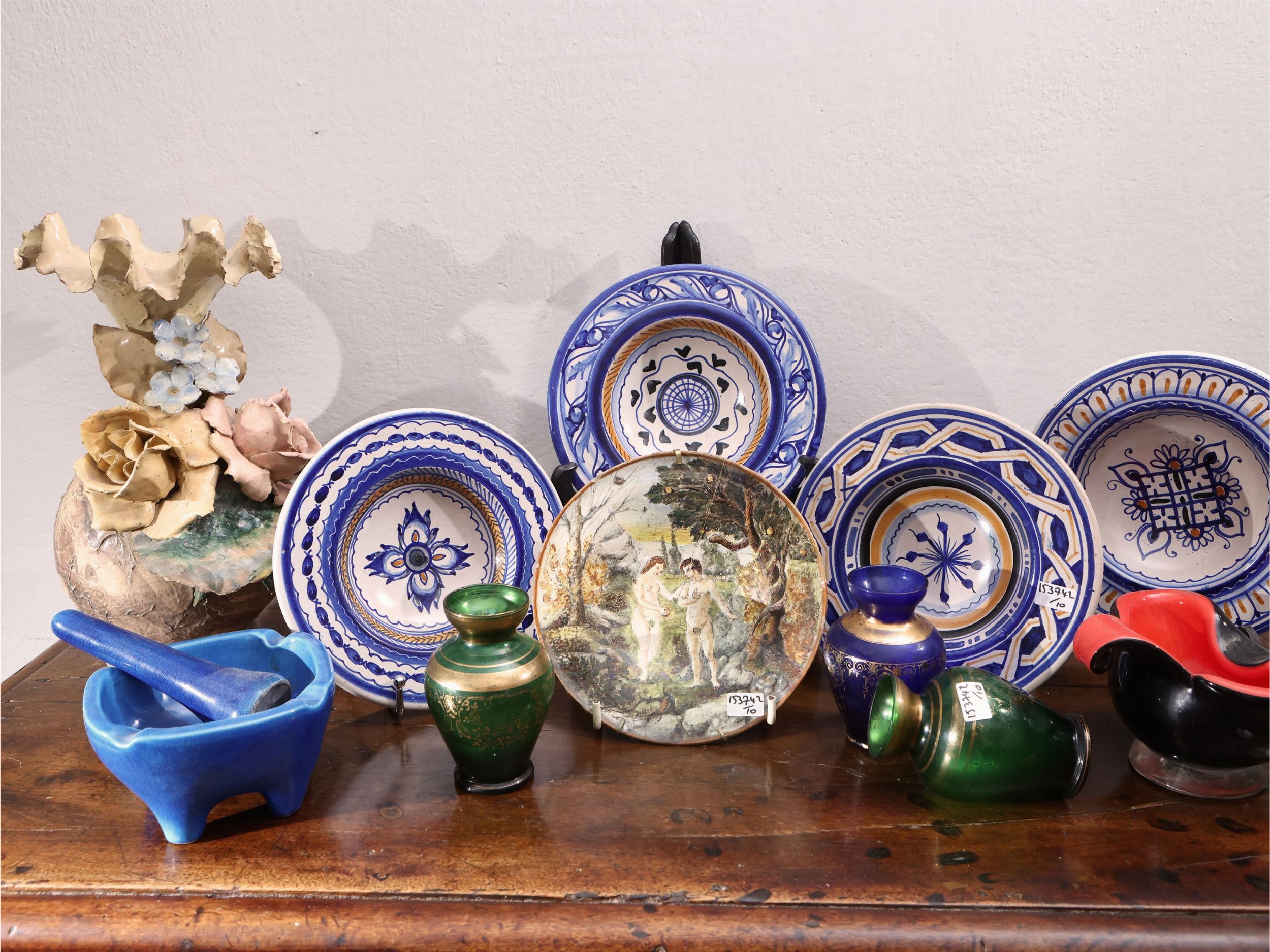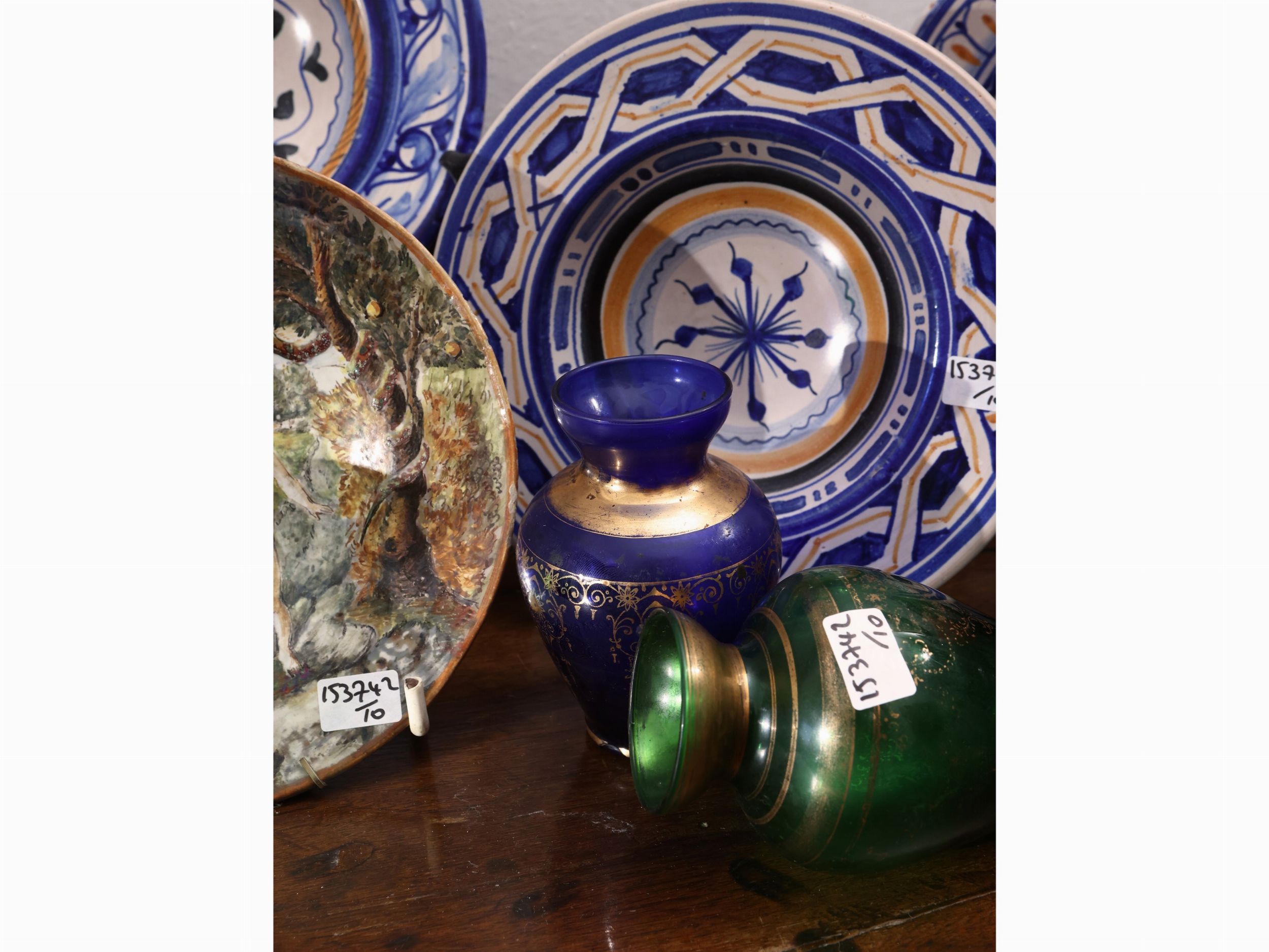 XIX/XX secolo tra cui un vaso in terracotta smaltata decorato con rose in rilievo, Italia meridionale, ed una coppia di piccoli vasi cloisonné, possibili lievi difetti