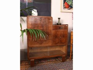Credenza Art Decò impiallacciata in noce e piuma di noce