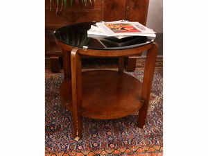 Tavolino da centro in noce e vetro fumé