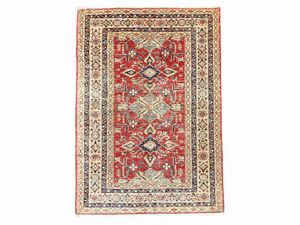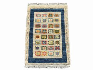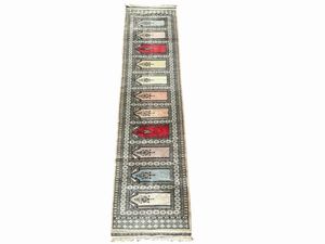 tappeto cm 272x155, scampoli circa da cm 135x125 a cm 146x136 campo a motivi geometrici nei toni del bianco e [..]