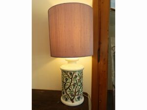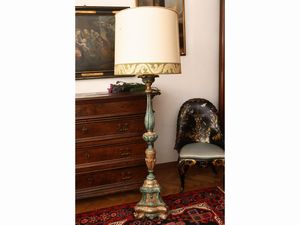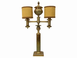 h cm 60 inizio del XX secolo base a colonna sormontata da vaso a coppa, due bracci portacandele, corredato di [..]