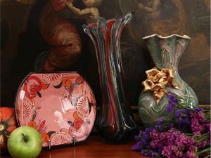 saliera h cm 20 (4) composto da due lucerne in terracotta di gusto archeologico, Bertelli, una doppia saliera [..]
