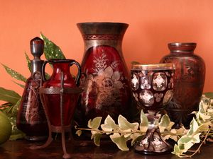 h da cm a cm 46 (3) inizio del XX secolo composto da piccola specchiera incisa con dettagli in vetro soffiato [..]