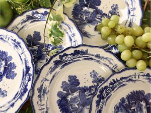 piatti diam cm 25 (10) fine del XIX secolo/inizio del XX secolo decorati in monocromia blu, cinque piani e cinque [..]