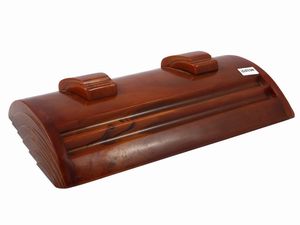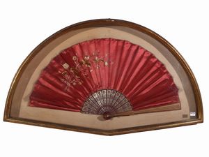 inizio del XX secolo pagina in raso rosso ricamata con motivi floreali nei toni del bronzo, stecche in legno [..]
