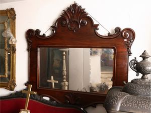 cm 115x130 metà del XIX secolo sormontata da grande cimasa a volute contrapposte, intagliata con motivo a roc [..]