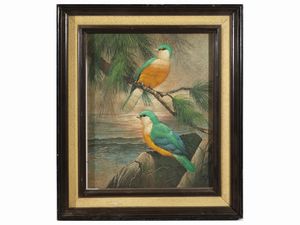 cm 26x14,5 (3) fine del XIX secolo tre dipinti ad olio su carta applicata a cartoncino, in cornice