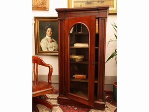 h cm 150x77x40,5 fine del XIX secolo un'anta a vetro centinata su fronte dritto, all'interno cinque scaffali, [..]