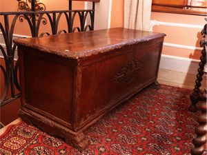 h cm 58x138x52 Italia centrale, XVII secolo fronte intagliato con rosone, piedi zoomorfi, difetti