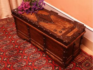 h cm 43x90x35 XVIII secolo rilegato in ferro e rinforzato con borchie, all'interno meccanismo di sicurezza a [..]