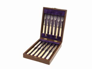 Inghilterra, inizio del XX secolo completo per 12 persone, composto da 12 forchettine e 12 coltellini con manici [..]