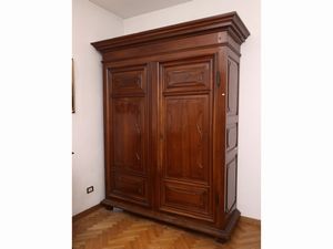 h cm 215x185x60 Italia settentrionale, XIX secolo due nate a doppia formella con cornici modanate, maniglie in [..]
