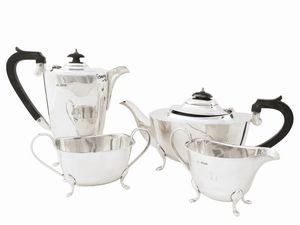 gr 1500, h da cm 8 a cm 20 (4) composto da teiera, caffettiera, lattiera e zuccheriera per zollette incise con [..]