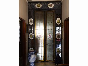 misura massima cm 284x164, ante ciascuna cm 260x50 XX secolo imbotte decorato da serie di otto formelle ovali [..]