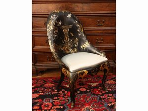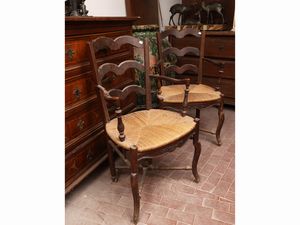 h cm 94x40x53 (6) Toscana, prima metà del XVIII secolo schienali sagomati con cartella traforata a volute, gambe [..]