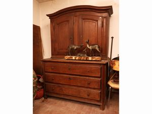 h cm 184x136x76 Francia, fine del XVIII secolo cappello modanato e sagomato, due sportelli nella parte superiore, [..]