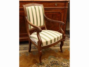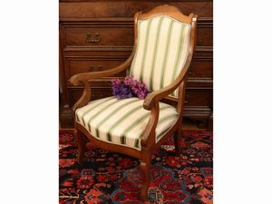 h cm 90x55x48 metà del XIX secolo braccioli a giorno, rivestita in raso rigato nei toni del verde
