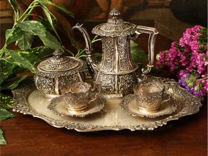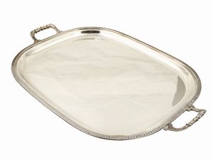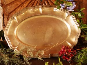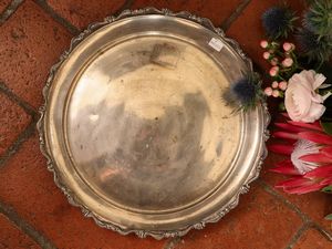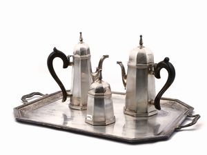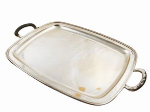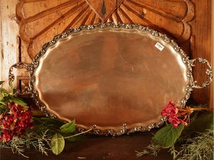gr 1340, h da cm 4 a cm 15, vassoio cm 34x26 (5) interamente cesellato e traforato con volute e motivi floreali, [..]