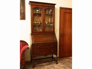 h cm 204x86x44 Inghilterra, inizio del XX secolo due sportelli a vetro nella parte superiore, sportello a calatoio [..]