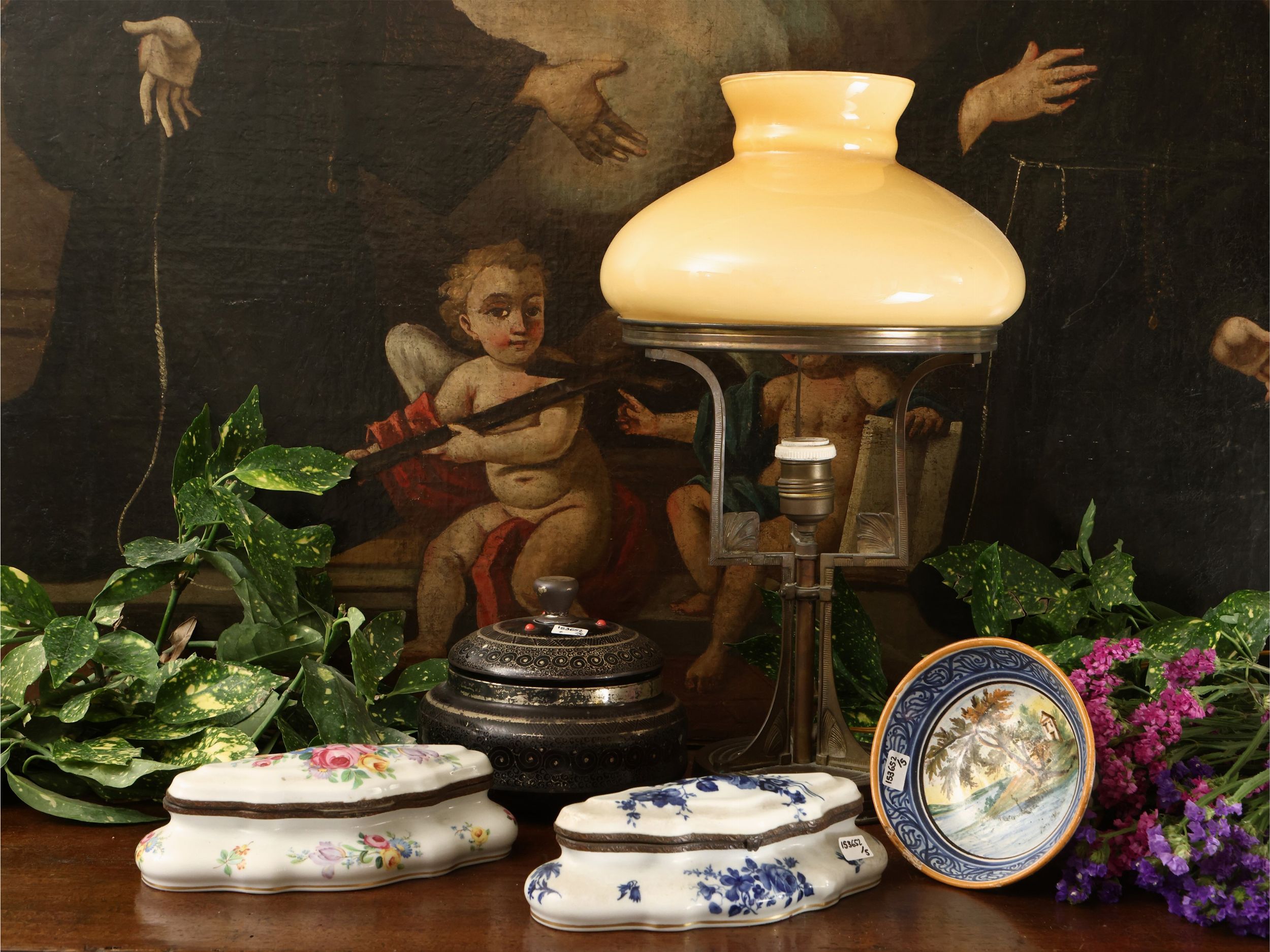 tra cui un lume ad olio ed una coppia di scatole, lievi difetti
