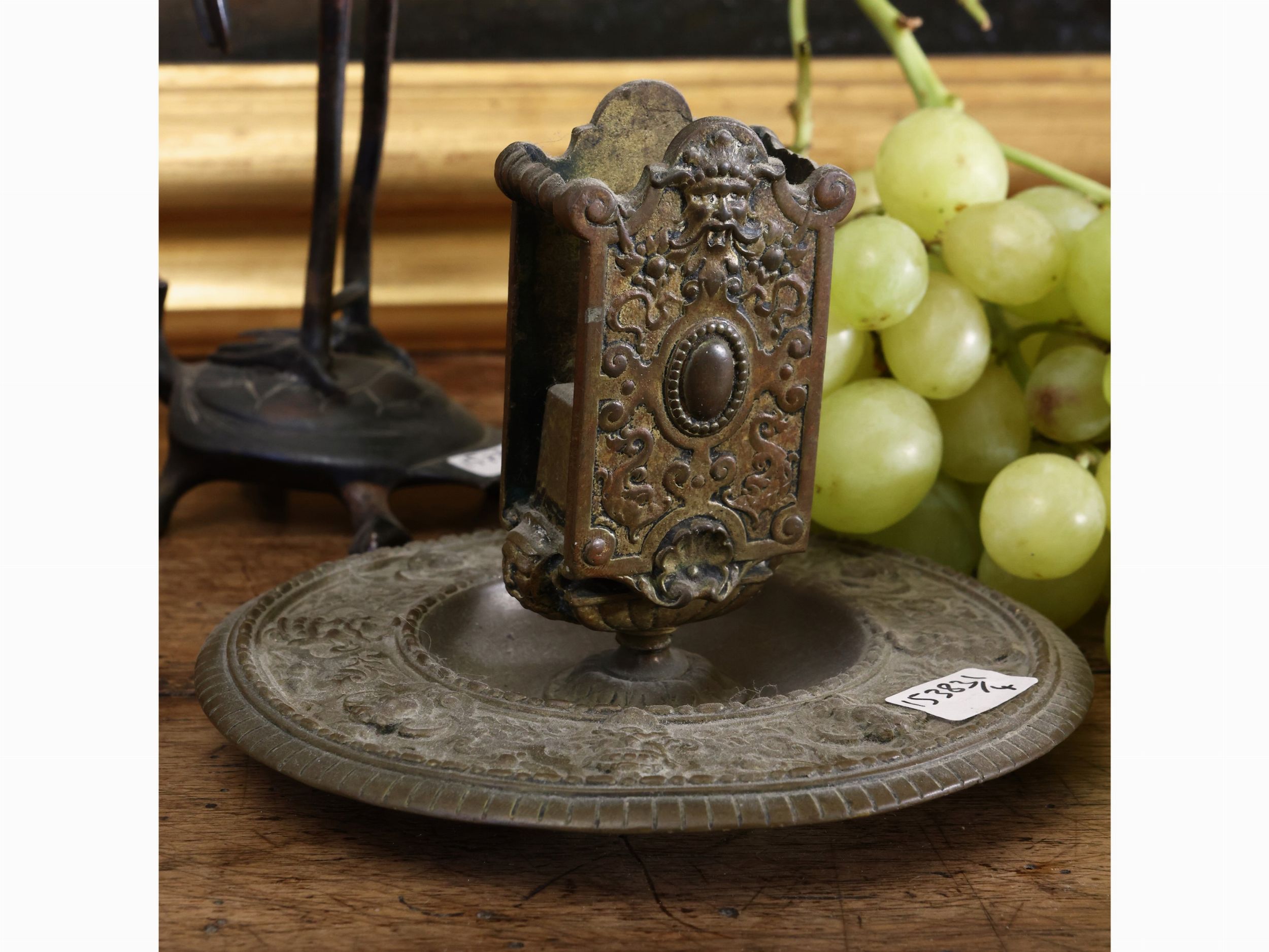 inizio del XX secolo composto da un calamaio, un portacerini, una piccola torciera ed un fermacarte orientale