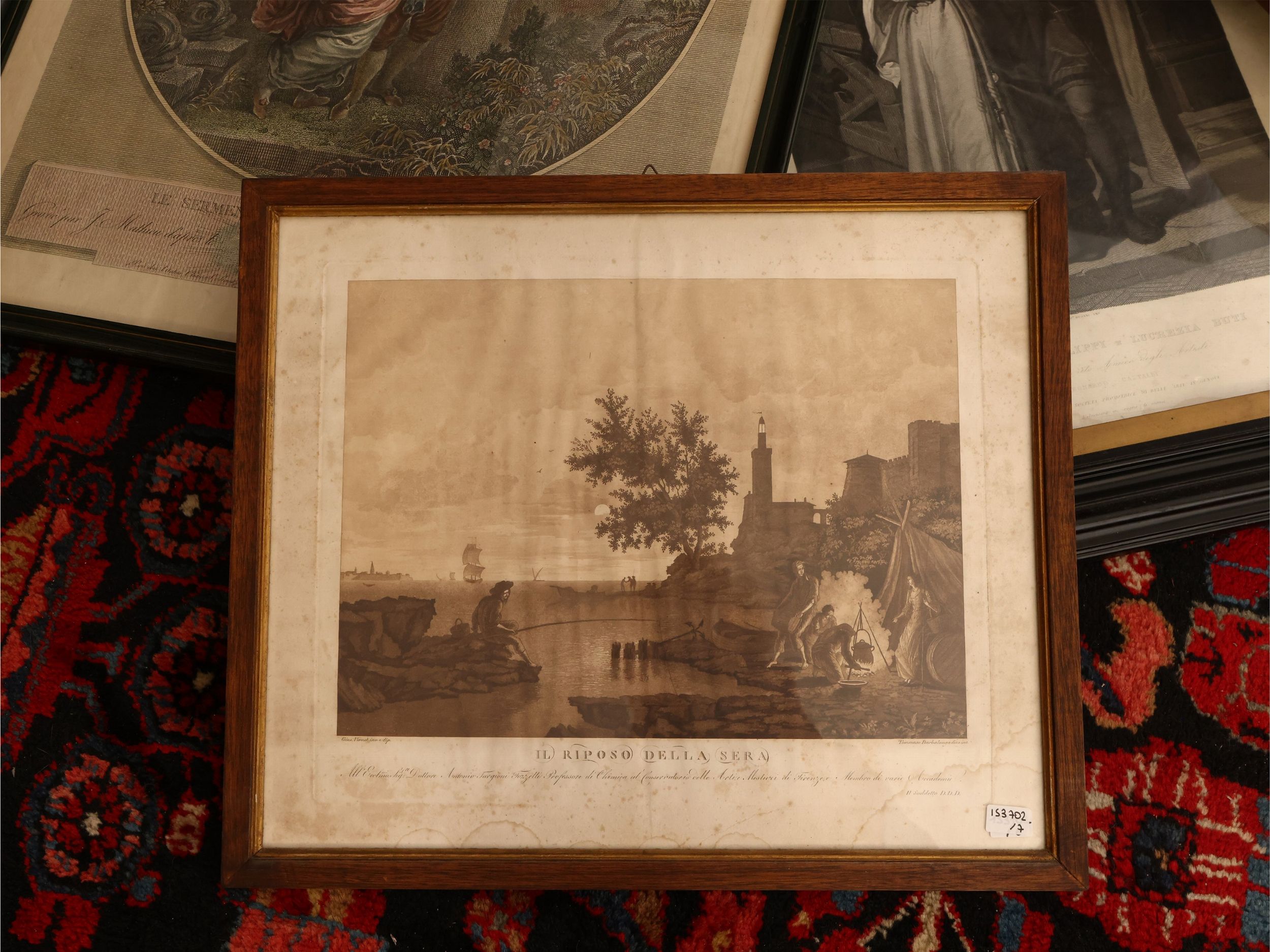 XVIII/XIX secolo raccolta di incisioni e litografie raffiguranti paesaggi, personaggi e scene mitologiche, in cornice, alcuni difetti