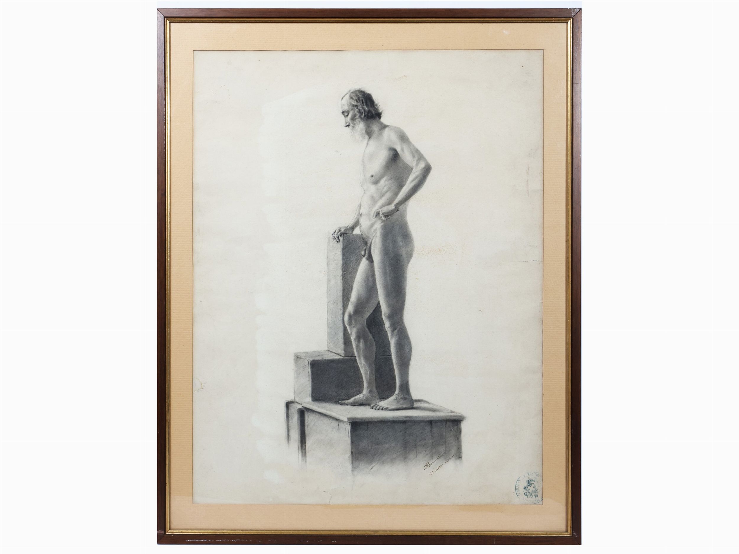 XIX/XX secolo matita e carboncino su carta, firmato e datato, in cornice, alcuni difetti
