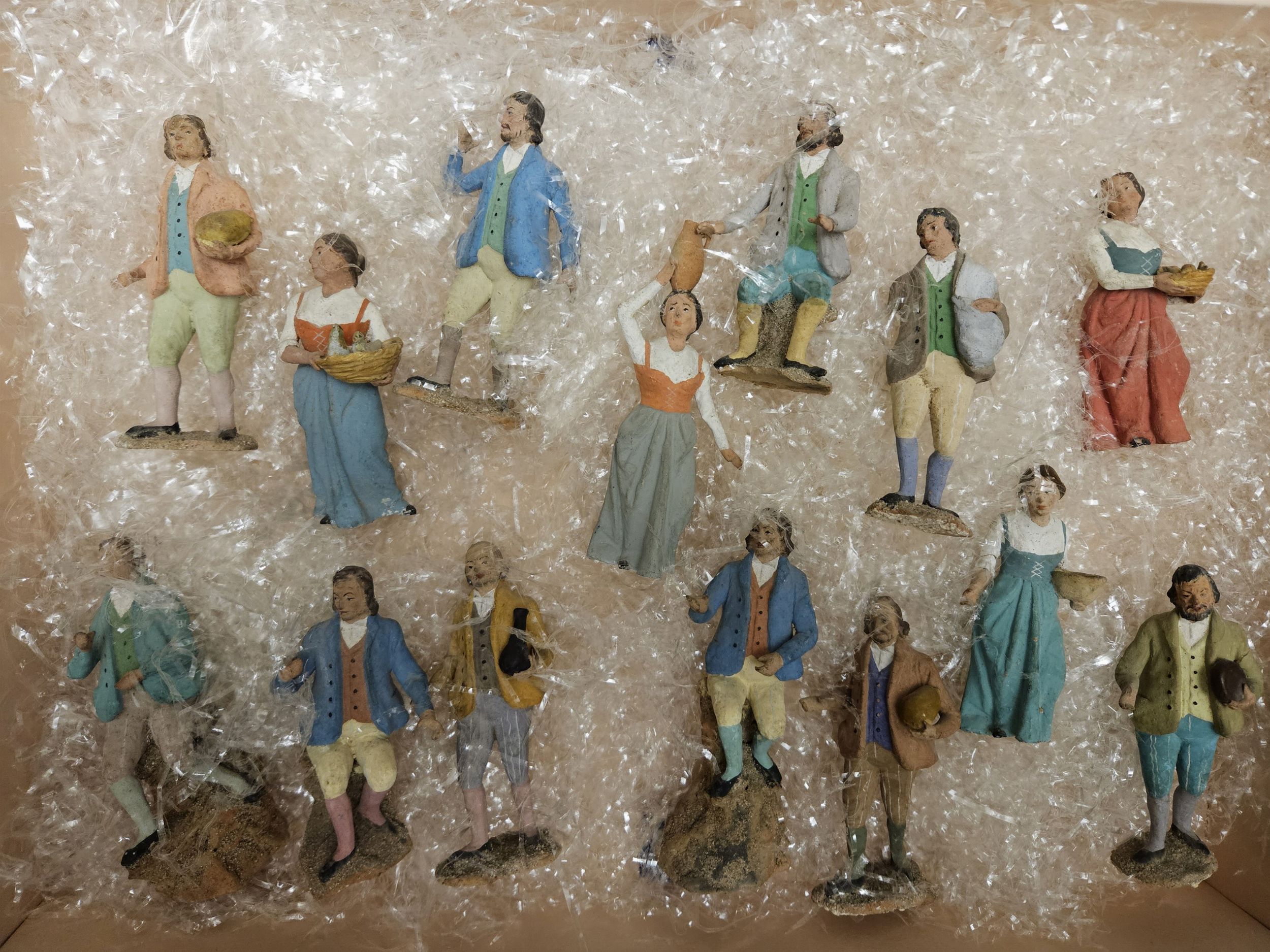 Serie di quattordici personaggi per presepe in terracotta dipinta