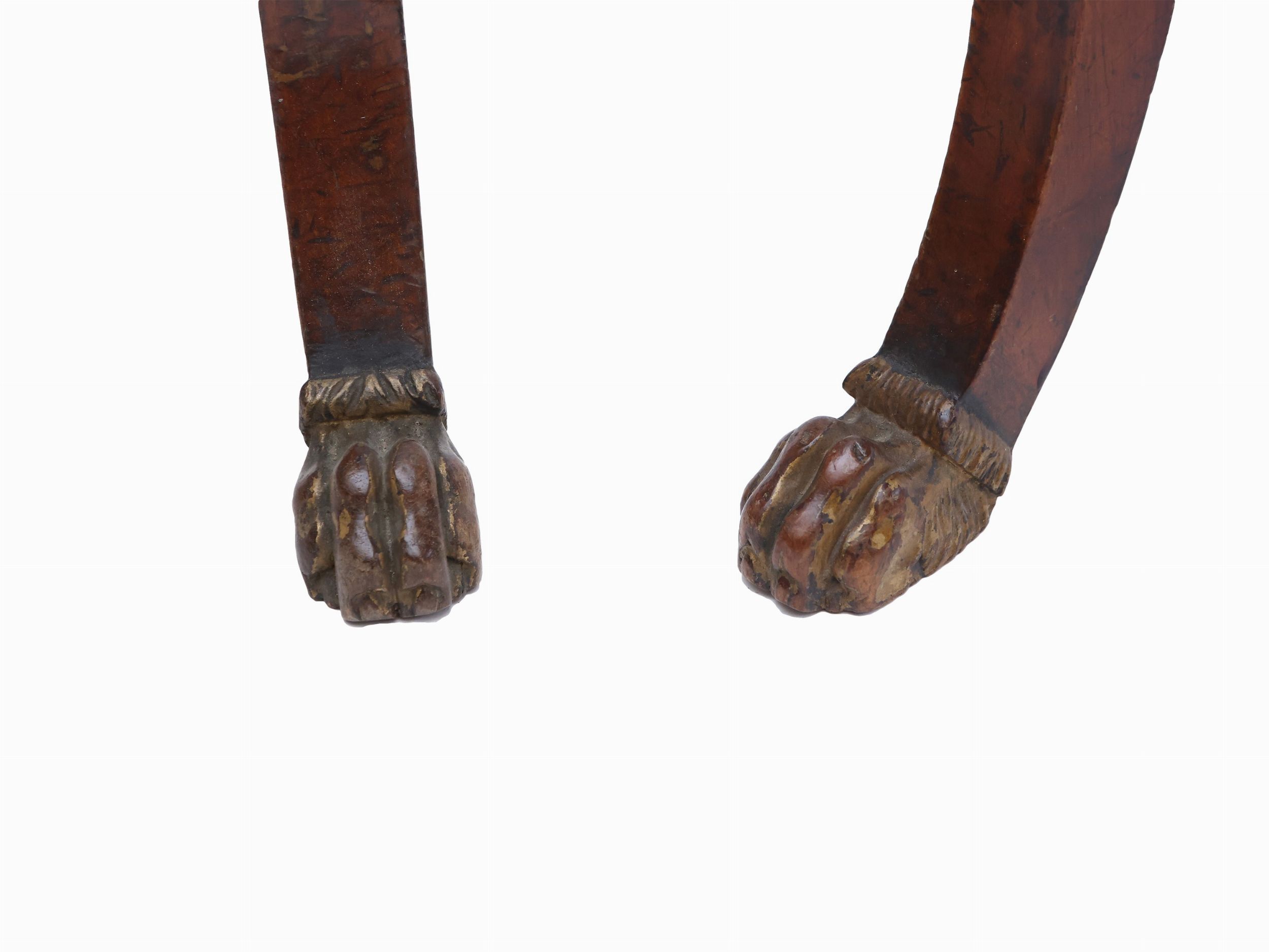 Inghilterra o Francia, XIX/XX secolo schienale con cartella a lira cuoriforme, gambe a sciabola, sedili rivestiti in velluto rigato nei toni del beige, alcune mancanze