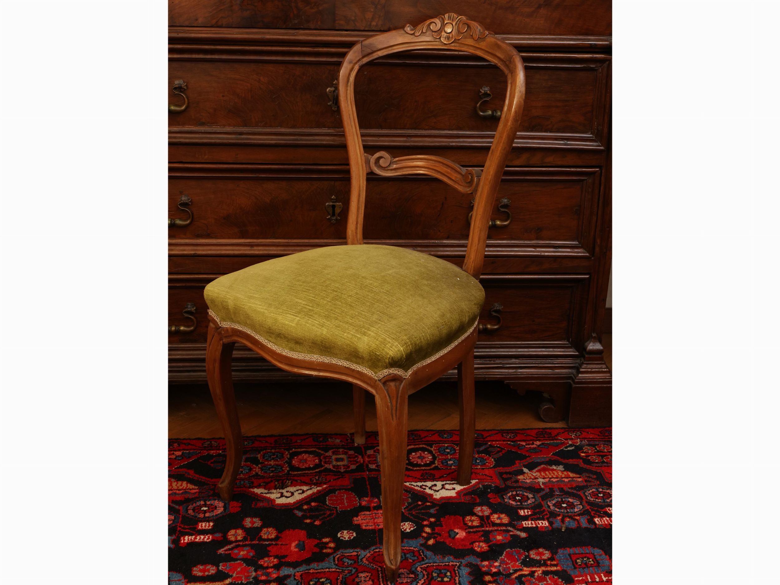fine del XIX secolo schienali centinati, rivestite in velluto verde, alcuni difetti
