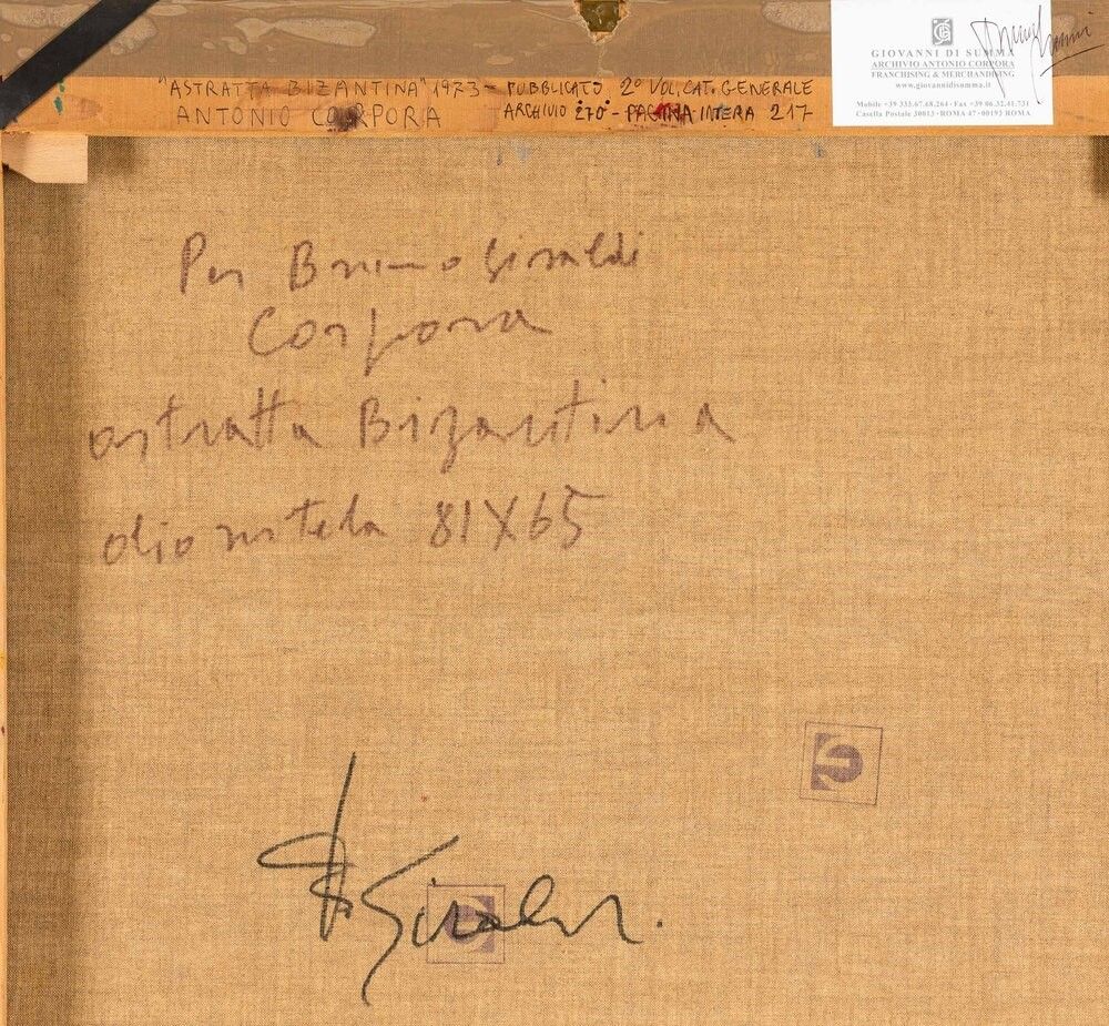 Etichetta e firma al retro della Galleria Giovanni Di Summa, Roma