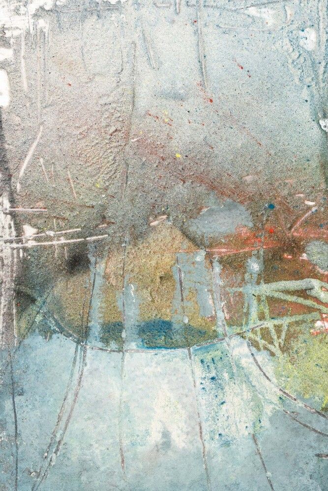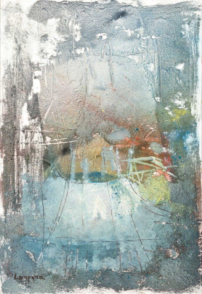 olio, sabbia e graffiti su cartone, Largh. 47 - Alt. 67 Cm