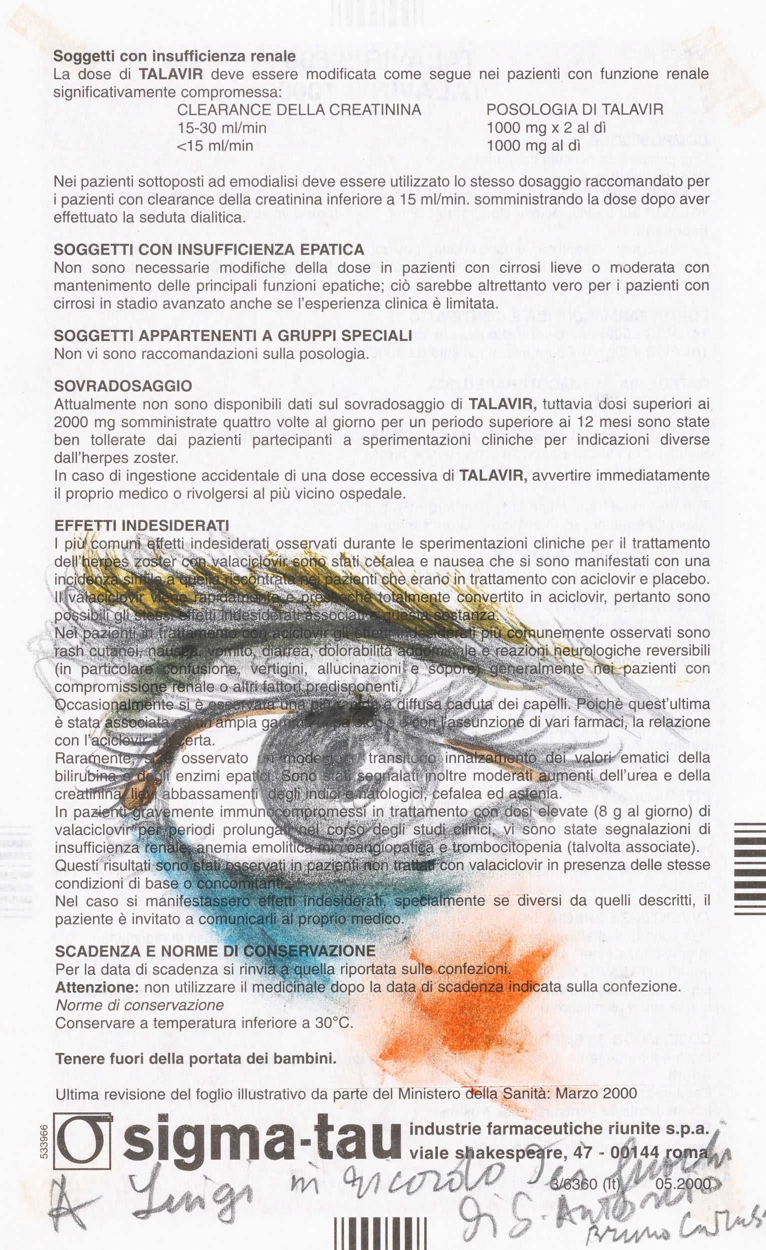 tecnica mista su carta (foglietto illustrativo), Largh. 15,5 - Alt. 25,5 Cm