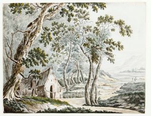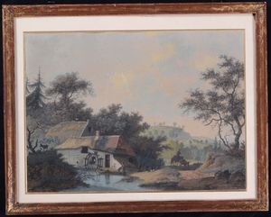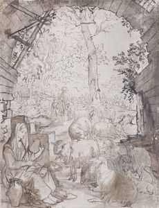 Scuola italiana del XVIII secolo Paesaggio con pastori
