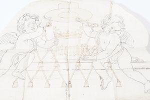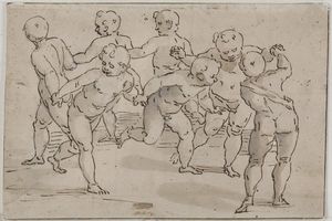 Scuola del XVIII secolo Putti che giocano con natura morta