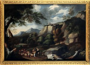 Scuola italiana del XVII secolo Paesaggio con pastori e armenti