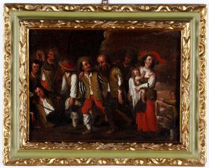 Scuola fiamminga del XVII secolo Scene di genere con popolani