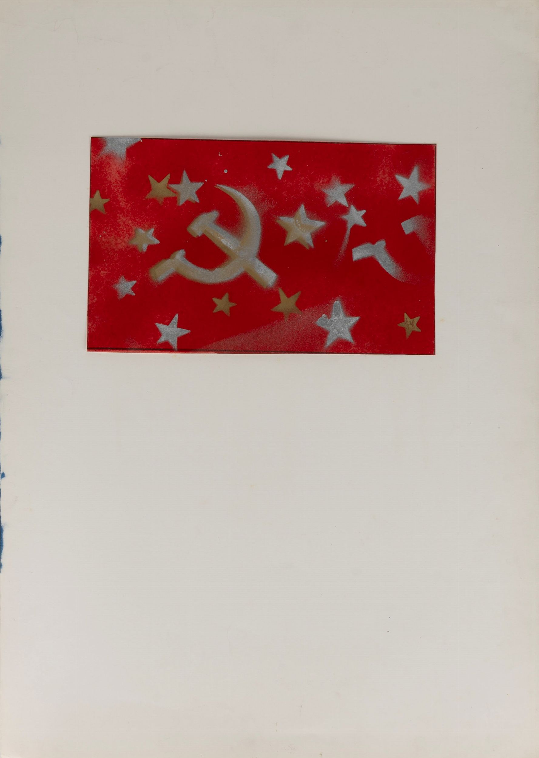 vernice a spruzzo e collage su carta, cm 70 x 50