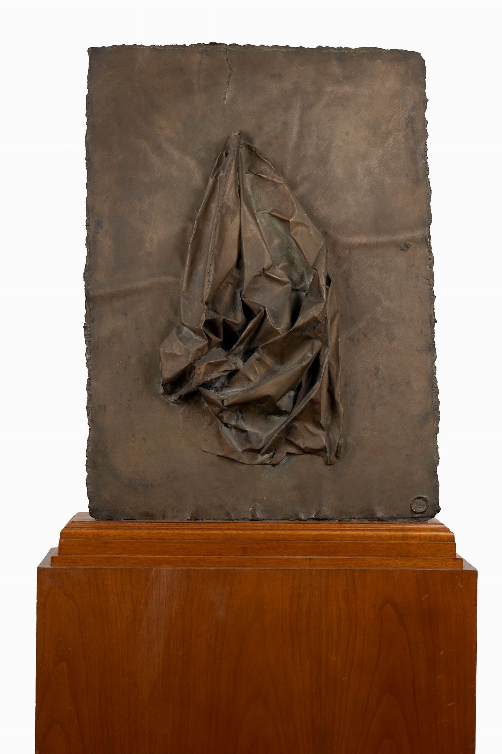 bronzo patina bruna, esemplare unico, cm 76 x 55 x 8
