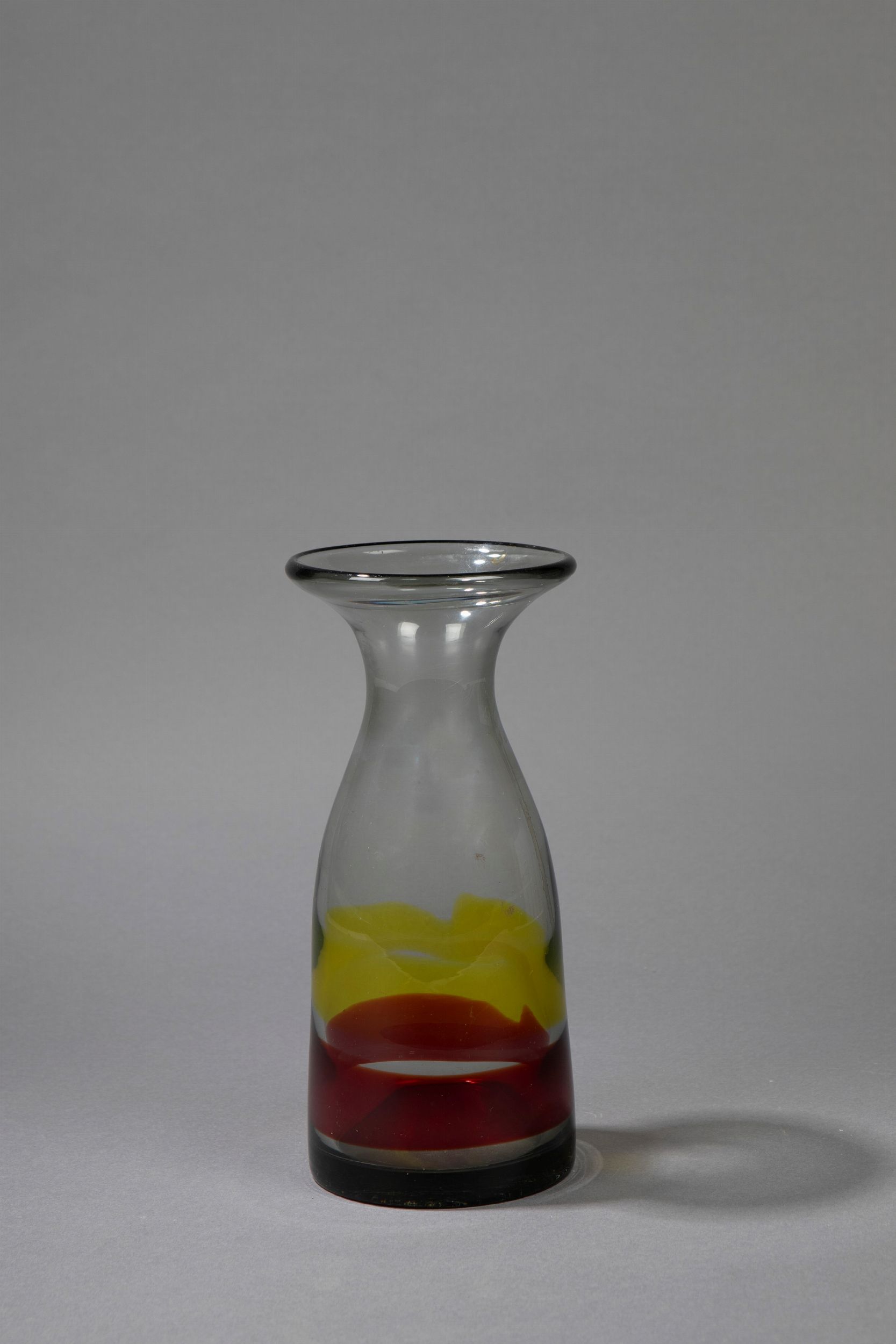 1950 ca. in vetro soffiato a fasce colorate. Firma ad acido Venini Murano Italia.Produzione Venini.