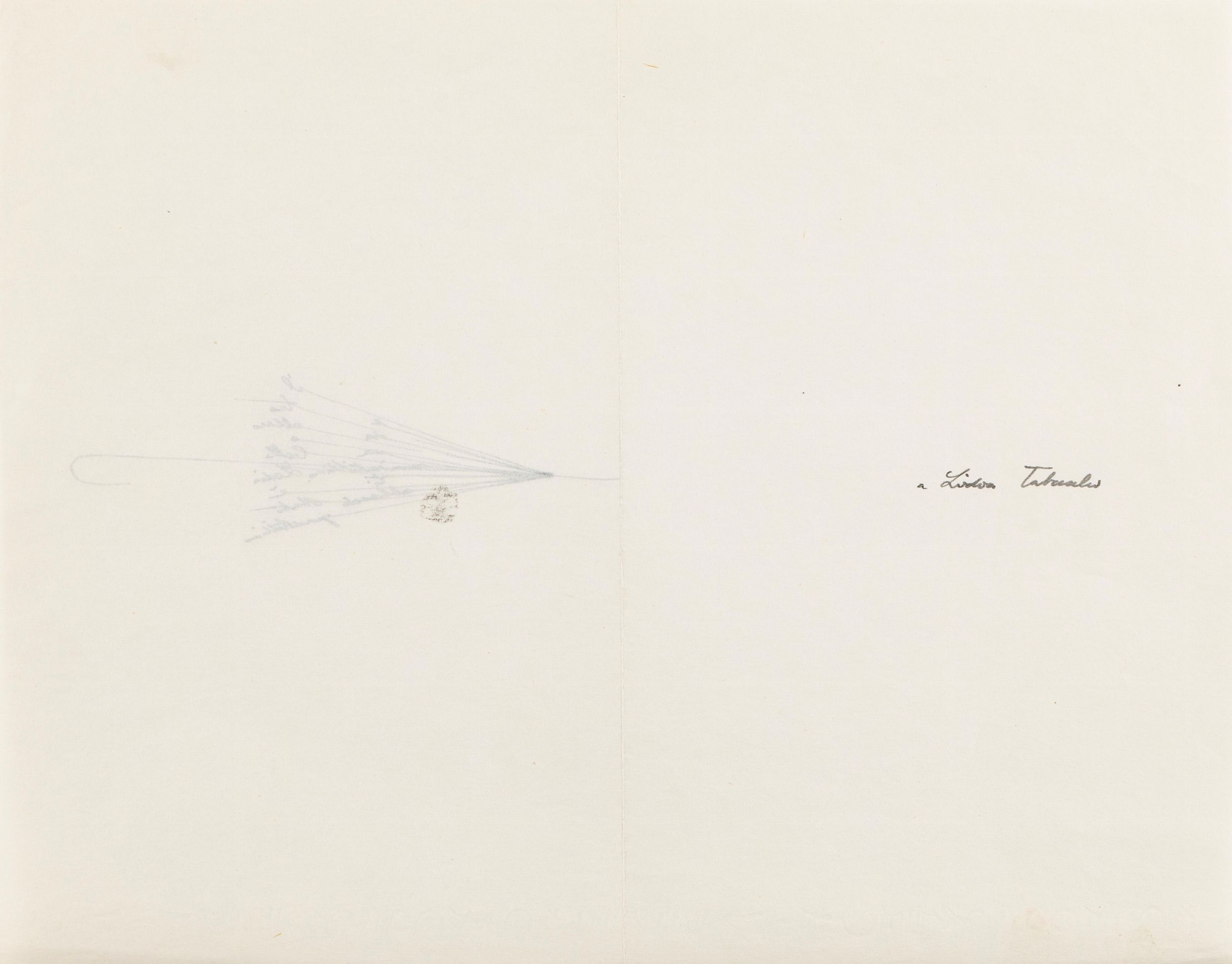 27,9 x 22 cm 1960 ca. Ombrello con messaggio a Lidia Tabacchi, direttrice della rivista Novità. Inchiostro nero su carta. “Il tuo albero o bella Lidia è stato graditissimo e da me ammiratissimo ti abbraccio.”
