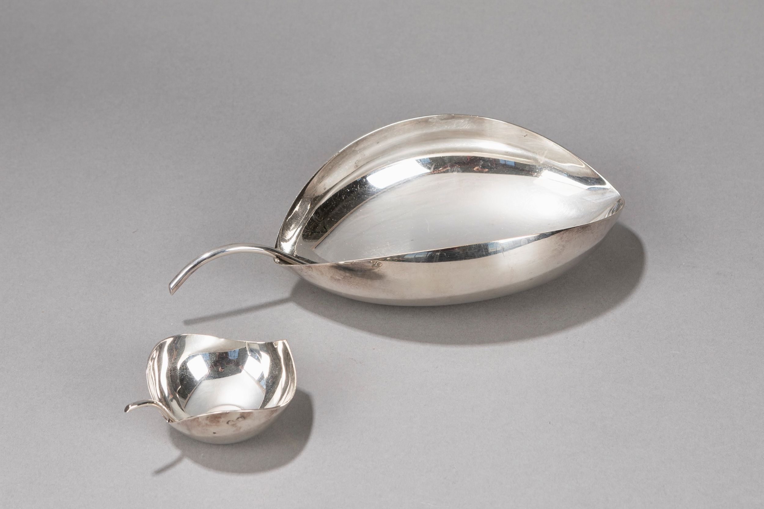 1950 ca. a forma di foglia. Metallo argentato. Produzione Christofle. Marchio sotto la base.