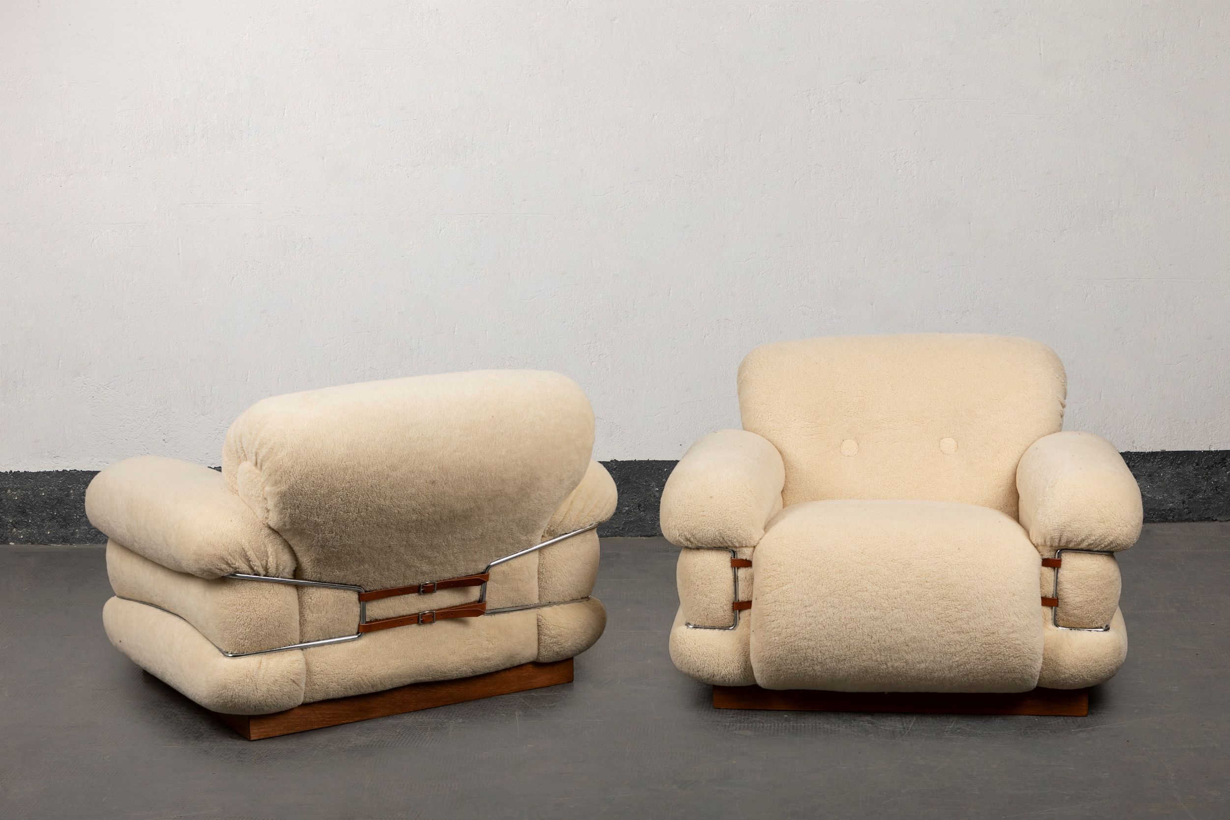 1970 ca. modello Pompom. Struttura tubolare in metallo cromato. Rivestimento in ciniglia.