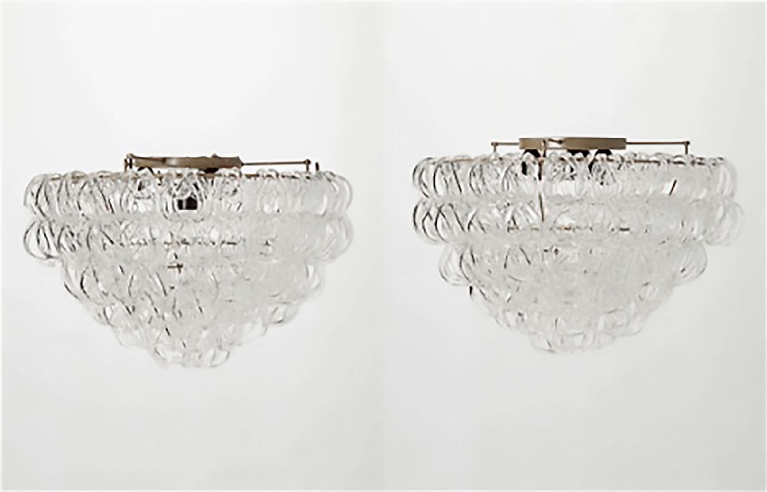 1966 Coppia di lampadari a elementi in vetro di Murano lavorati a mano.Produzione Vistosi.