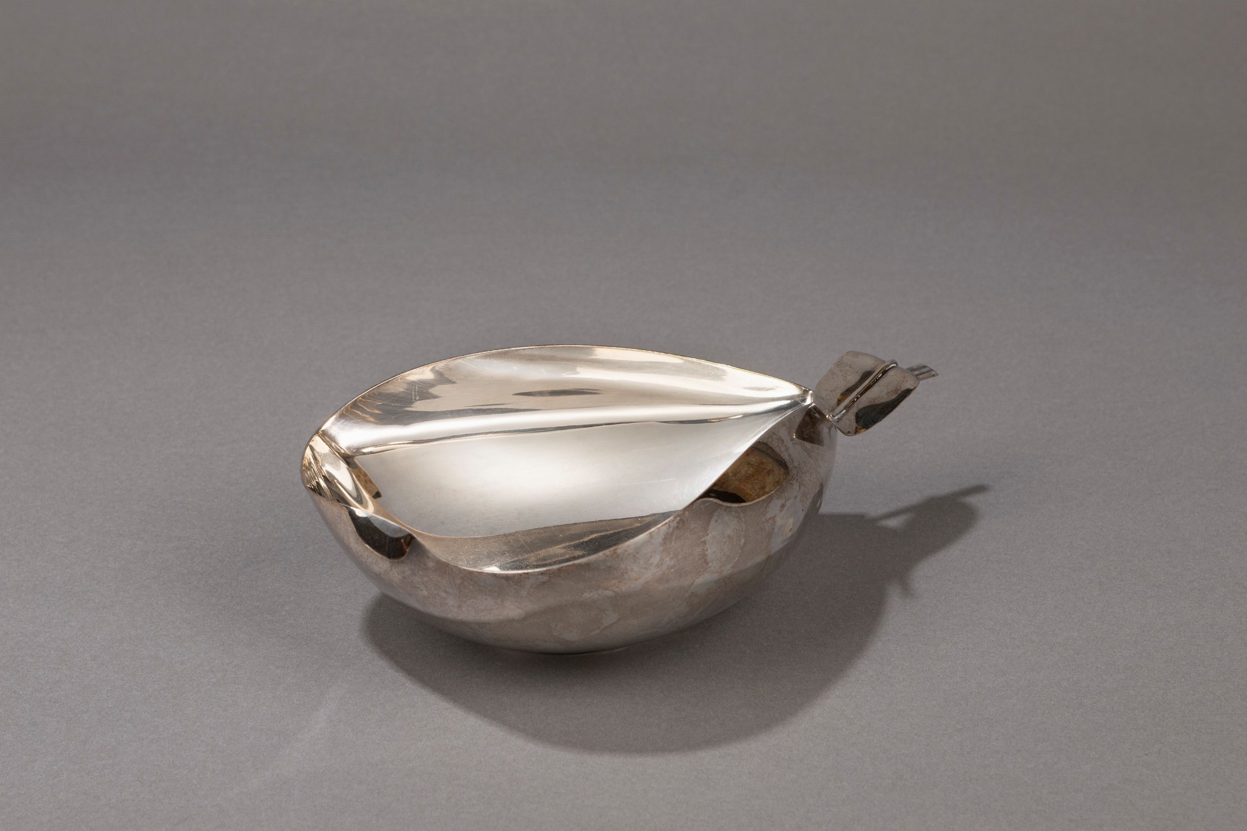 1950 ca. Contenitore con coperchio in metallo argentato.