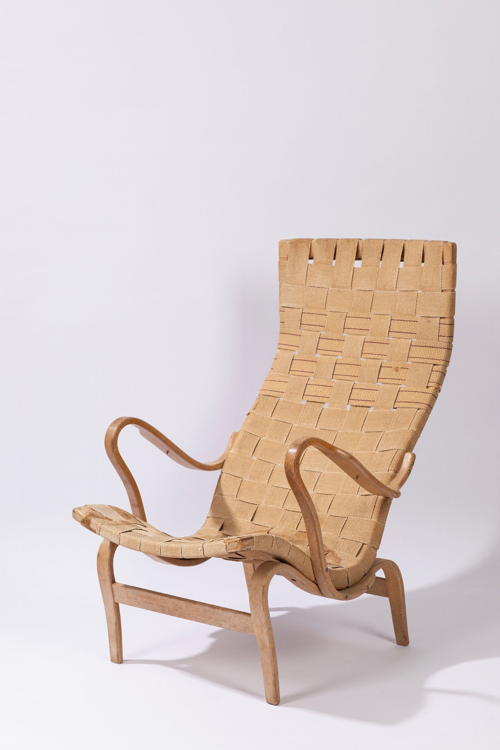 1964 Poltrona modello Pernilla 67 con struttura in laminato termoformato incollato, il tutto teso con cinghie di juta